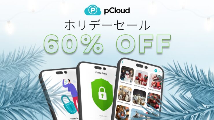 pCloudの2023年のクリスマスホリデーセールには、pCloudの2TBを71%、10TBのFamily lifetimeプランを85%割引で購入できるセールです!