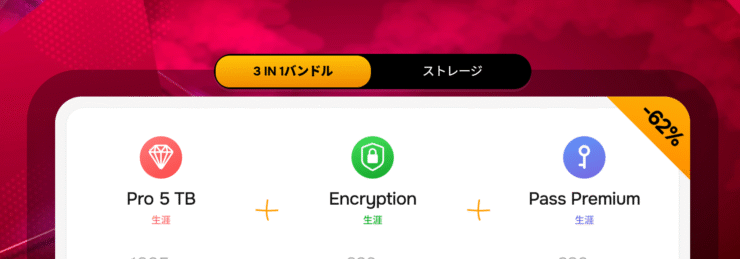 この「pCloud Pass 」や暗号化機能の「Encryption」も含めたバンドルはセール限定セット割引ですね。
