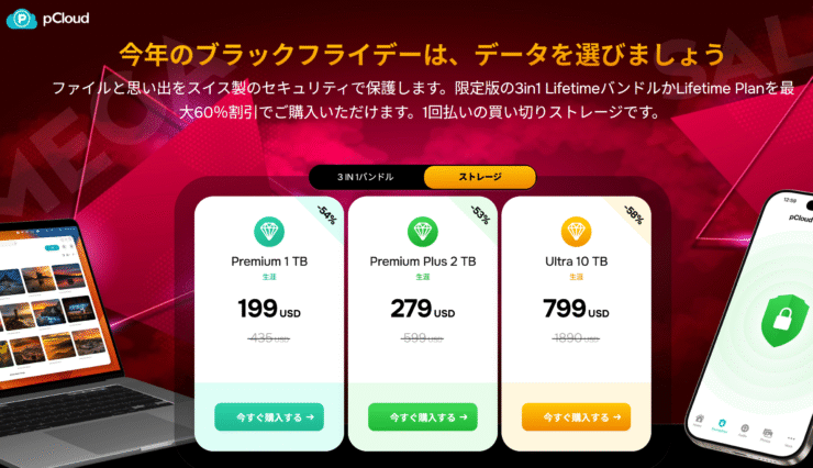 pCloudのブラックフライデーセールは、pCloudを最大60%オフで購入できるセールです!