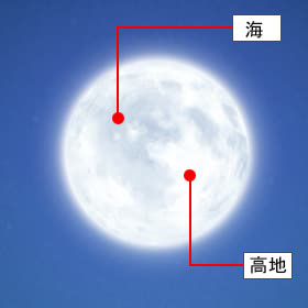 月面には反射率が低くて暗く見える「海」と呼ばれる部分(実際に水がある海ではありません)と、反射率が高くて明るく見える「高地」と呼ばれる部分があります。