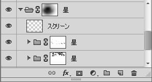 レイヤーマスクはレイヤー単体だけでなく、レイヤーグループにも適用できるので、星レイヤーを複製していた場合でもまとめてグループごとマスクで薄くできます。