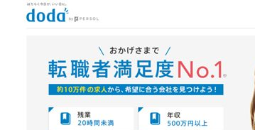 dodaは転職サイトのほうもあり、そちらで調べるとどんな会社をエージェントが取り扱っているか確認できます。