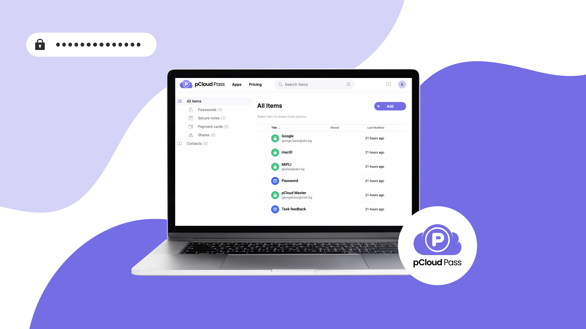 pCloud Passはいわゆるパスワードマネージャーというやつで、メジャーどころだと1Passwordとか聞いたことあるんじゃないでしょうか。